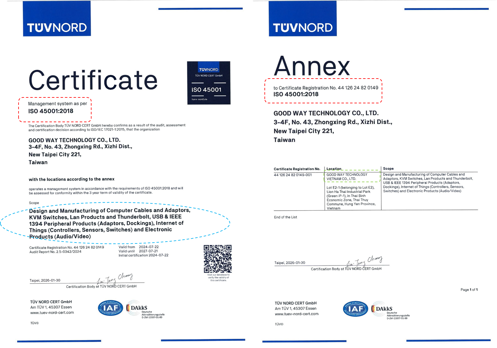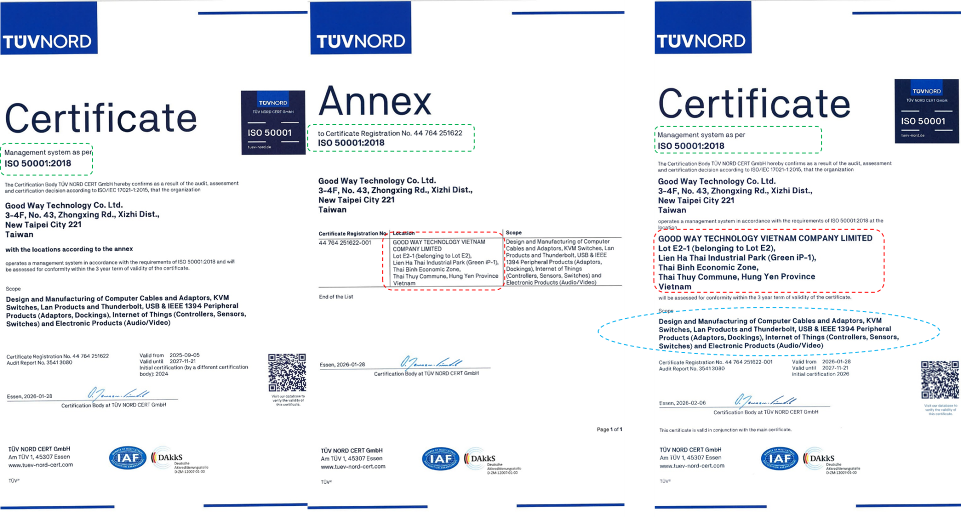 这两项认证由全球知名的 TÜV NORD CERT GmbH 颁发,充分体现了Good Way越南在保障员工安全、提升能源效率及推动可持续发展方面的坚定承诺。